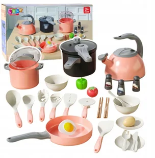 Zestaw Kuchenny Garnki Akcesoria Do Gotowania Jedzenie Różowe 32 el.