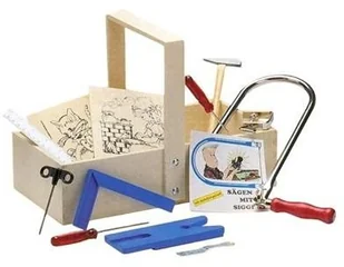 Pebaro Zestaw 430 wyrzynarek w skrzynce stolarskiej, 20 części, kompletny zestaw, skrzynka stolarska, drewniana skrzynka, wysokiej jakości narzędzia stalowe, łuk do wyrzynarki, wyprodukowano w Niemczech, rękodzieło z drewnem, pomysł na prezent dla dzieci