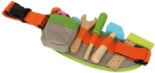 Small Foot by Legler Regulowany pasek narzędziowy z kolorowymi narzędziami do zabawy / akcesoria z drewna (linijka, śrubokręt, młotek, klucz widełkowy, śruby i nakrętki), zabawka drewniana od 3 lat