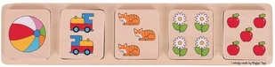 Zadaniem Malucha jest dopasowanie obrazka do odpowiedniej cyferki na podstawce. Jest to świetna zabawka do nauki liczenia.