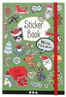 Naklejki z klejem na papier. Ponad 1700 sztuk rozmieszczonych na 76 stronach. Wśród wzorów są między innymi choinki, Mikołaje, bałwanki, prezenty, ozdoby choinkowe itp.