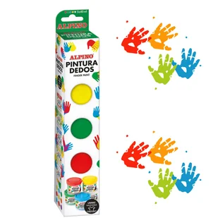 Zestaw farb do malowania palcami Alpino 5 kolorów: • wysokopigmentowe, kolory o bardzo silnych właściwościach kryjących • Gęsta konsystencja • Pakowane w kub...