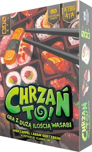 happy hours!!W grze Chrzań to!, rywalizujecie ze sobą o możliwość realizowania najbardziej prestiżowych zamówień na rolki sushi i dania kuchni japońskiej. Możecie skupiać się na ilości, realizując jak najwięcej mniejszych i tańszych zamówień, albo zaryzykować i wykonać mniej, ale za to bardziej wartościowych (pod względem punktów zwycięstwa) dań. W każdej turze będziecie dodawać na planszę nowe płytki składników, powodując, że wasza przestrzeń będzie się zmniejszać wraz z upływem gry. Waszym zadaniem będzie zatem tak układać te płytki, aby zachować jak najbardziej optymalny dla siebie układ, pozwalający zaserwować jak najwięcej dań jedocześnie. Realizujcie przepisy i serwujcie nawet najtrudniejsze dania, używając znanych najlepszym szefom kuchni technik zawartych na kartach akcji, aby ułatwiać sobie zadanie.