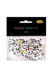 Prezentujemy drewniane guziki o oryginalnym designie, przedstawiające krowę. Mają one wymiary 27x21 mm i są dostępne w zestawach po 15 sztuk. Idealne do różnorodnych projektów artystycznych oraz dekoracyjnych.