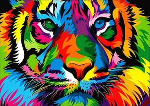 Kompletny zestaw do samodzielnego układania mozaiki. Zawiera wszystkie elementy niezbędne do samodzielnego wyklejenia obrazu. Nazwa zestawu: "TĘCZOWY TYGRYS" Wymiary obrazu: 30cm x 40cm (nadruk około 24cm x 34cm) Pełny haft: