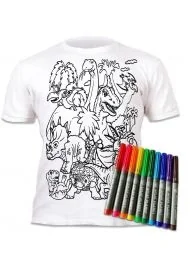 Koszulka do wielokrotnego kolorowania Dinozaur 5-6Splat Planet ➡️ Zabawki / Kreatywne / Plastyczne ✔️ Koszulka do wielokrotnego kolorowania Dinozaur5-6. Każde opakowanie zawiera koszulkę i zestaw 10 magicznych pisaków do kolorowania. Pisaki są nietoksyczne i zmywalne. Po zakolorowaniu koszulki można ją wyprać i pokolorować od nowa. Koszulki występują w kilku rozmiarach.