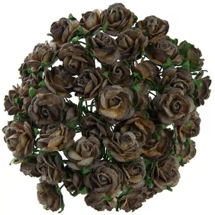 KWIATY papierowe RÓŻYCZKI otwarte czekoladowo-brązowe 10mm - 50szt