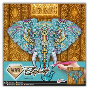 Zestaw do ozdabiania diamentami kolorowych obrazków z ciekawymi grafikami . Zamiast haftowania nićmi ten obrazek haftuje się kolorowymi diamencikami. Powierzchnia obrazka w miejscach przyklejenia diamencików jest samoprzylepna . Należy za pomocą dołączonego przyrządu umieścić właściwy diamencik na właściwym miejscu. Woreczki z diamencikami są odpowiednio opisane.