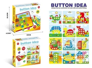 Mozaika. Zabawka. Zestaw Button Idea to innowacyjna zabawka plastyczna, która zamienia naukę w fascynującą przygodę pełną kolorów Dzięki niej dziecko może rozwijać swoją wyobraźnię i zdolności manualne w najbardziej przystępny sposób W pudełku znajduje się 46 dużych, łatwych do uchwycenia guzików w. . .