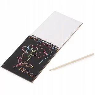 NOTES notesik ZDRAPYWANKA wydrapywanka + PATYCZEK Nietypowy notesik z czarnymi kartkami do zdrapywania. Za pomocą bambusowego patyczka można wykonać kolorowy, tęczowy obrazek. Pozwala to na rozwijanie wyobraźni poprzez możliwość tworzenia własnych kompozycji zdrapywanek. Wymiary: 100 x 140 x 4 mm Materiał: papier, bambus Kolor:
