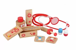 Każdy mały lekarz potrzebuje w swojej kolekcji tego drewnianego zestawu lekarza w walizce. W środku znajduje się wszystko co niezbędne dla miłośnika leczenia ludzi bądź zwierząt. Połączenie czerwonego i białego doskonale oddaje charakter prawdziwych przyborów lekarskich, dzięki czemu spodoba się każdemu maluchowi, odkrywającemu świat.
