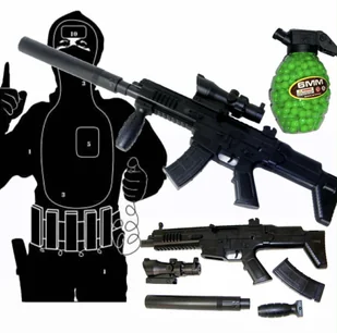 Pistolet Instrukcja obsługi i warunki bezpieczeństwa Tarcza Kulki Dane techniczne: Materiał: kompozyt ABS-u + dodatki metalowe Waga: ok 350 g Kolor: czarny Prędkość początkowa: 150 FPS Zasięg ok.