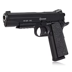 Pistolet - wiatrówka RANGER 1911 GSR - KWC Opis marki RANGER RANGER to marka która już od wielu lat oferuje bardzo celne, bezawaryjne i sprawdzone wiatrówki długie i krótkie. Linia wiatrówek zasilanych kapsułami CO-2 powstała przy współpracy z największym na świecie producentem replik ASG i wiatrówek - taiwańską firmą KWC, znaną z wyjątkowo wysokiej jakości produkcji replik broni palnej. Firma ta działa na rynku od 1978 roku. Produkuje wierne repliki prawdziwej broni palnej w wersji wiatrówkowej zasilane kapsułami CO-2 12 g. Produkty sprzedawane pod marką RANGER cechuje więc wyjątkowa jakość wykonania i dbałość o wszystkie szczegóły.