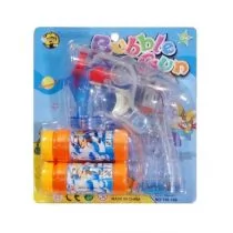 Plastikowy pistolet, w kształcie rybki, na bańki wraz z dołączonymi dwoma płynami do baniek. Zabawka pozwoli wytworzyć dzieciom duże ilości tak ulubionych przez nie baniek mydlanych.
