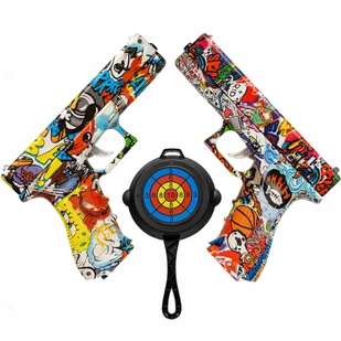 ZESTAW 2X PISTOLET NA KULKI ŻELOWE + TARCZA DLA DZIECI BEZPIECZNY DUŻY Zestaw dwóch pistoletów na kuli żelowe z tarczą. Pistolety pomalowane w unikatowe graf...