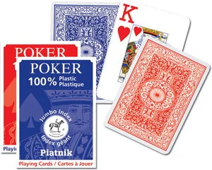 Najwyższej jakości, w 100% plastikowe karty do pokera. Talia składa się z 55 kart o pokerowym wymiarze 63 x 88 mm. Karty idealne zarówno do gry w pokera, brydża, remika jak i innych gier. Rewers niebieski. Wiedeńska fabryka Ferd.