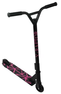 Hulajnoga wyczynowa X-RAPTOR HW-220XY Różowa X-RAPTOR HW220X to streetowy model o dopuszczalnym obciążeniu 100kg dla osób zaawansowanych oraz zaczynających swoją przygodę z jazdą wyczynową. Jednoczęściowy widelec oraz długa kierownica wykonane w 100% z aluminium powodują, że hulajnoga jest lekka i wytrzymała. X-RAPTOR spełni wymogi największych koneserów jazdy wyczynowej. 1. DECK Streetowy model z deckiem o wymiarach 480x105mm Najnowszy design “ nowoczesny wzór decku jest naszym własnym projektem, nigdzie indziej takiego nie znajdziesz! 2. Długa kierownica typu Y-Bar 360° Długość kierownicy to 59cm, dzięki czemu wysokość od podłoża wynosi aż 83cm.