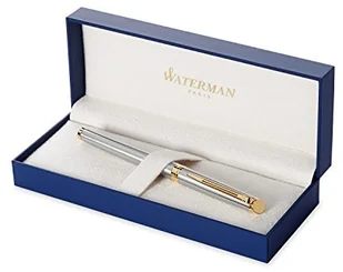 Pióro wieczne Waterman Hémisphère | Stal nierdzewna z wykończeniami z 23-karatowego złota | Średnia stalówka | Czarny atrament | Ozdobne etui