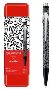 Długopis szwajcarskiej marki Caran d Ache z kolekcji specjalnej 849 Keith Haring, czarny w metalowym pudełku Oto wyjątkowy pomysł na prezent. Caran d Ache + Keith Haring kolekcja specjalna. Międzypokoleniowa, uniwersalna kolekcja odwołująca się do emblematycznych wzorów popowego artysty, celebrująca miłość i sztukę. Kultowy długopis 849 posiada sześciokątny aluminiowy korpus, który jest lekki i trwały. Na czarnym korpusie znajdziemy grafiki Keitha Haringa.