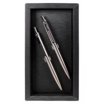 Elegancki zestaw metalowy długopis ołówek automatyczny marki Cresco z ekskluzywnej linii REPORTER stal nierdzewna. Ten model długopisu wyposażony został w tzw. cichy mechanizm wysuwania wkładu podczas przyciskania nie słychać charakterystycznego odgłosu klik klik, jaki występuje przy standardowych. . .