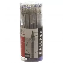 Lekki i funkcjonalny długopis biurowy, transparentna obudowa pozwalająca na kontrolę zużycia tuszu, istnieje możliwość wymiany wkładu, posiada zatyczkę zabezpieczającą przed niepotrzebnymi zabrudzeniami, idealny do biura i szkoły. Kolor niebieski. Grubość linii pisania 0,5 mm, długość linii pisania powyżej 800 m, kolor tuszu: niebieski, tuba 20 sztuk.