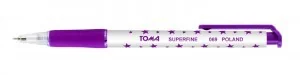 span {font-size:12pt}Długopis automatyczny SUPERFINE TOMA TO-069 FIOLETOWYo Plastikowa obudowa w gwiazdki w kolorze tuszuo Trwała kulka z węglików spiekanych wolframuo Kulka pisząca średnicy 0,5 mmo Długość pisania: 4000 mo Wkład produkcji szwajcarskiej firmy Premeco Dostępne kolory: niebieski, czarny, czerwony, zielony, fioletowyo Kolor tuszu: FIOLETOWY