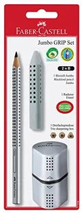 FABER-CASTELL 111996 – zestaw ołówków Jumbo GRIP 2001, z ołówkiem B, gumką i temperówką, srebrny