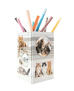 Uroczy koci wzór sprawia, że piórnik jest niezwykle atrakcyjny i zostanie doceniony zarówno przez dzieci, jak i dorosłych, którzy lubią koty. Dzięki kompaktowym wymiarom 8 cm x 8 cm i wysokości 13,5 cm piórnik nie zajmuje dużo miejsca na biurku, ale oferuje dużo miejsca na niezbędne przybory do pisania. Jego prosta konstrukcja i opcja szybkiego składania sprawiają, że idealnie nadaje się do elastycznych stanowisk pracy lub do przenoszenia między różnymi stanowiskami pracy. Ten przybornik na długopisy to uroczy i praktyczny dodatek, który wprowadzi porządek i styl na każdym biurku. Przybornik na długopisy, kartonowy- wykonany z bardzo wytrzymałego kartonu- na długopisy, pędzle, linijki, nożyczki i nie tylko- łatwy do wycierania i czyszczenia- utrzymuje porządek na dziecięcym biurku- Wymiary: