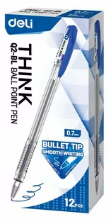 Pióro kulkowe Deli Pióro kulkowe Deli Q2-BL jest idealnym fundamentem pod udany dzień w pracy czy szkole. Jeden długopis łączący w sobie praktyczność, niezawodność oraz ponadczasowy, minimalistyczny wygląd. Produkt posiada antypoślizgową , wyjątkowo wygodną strefę chwytu , która została wyposażona w specjalne wyżłobienia gwarantujące stabilne i pewne pisanie . Końcówka pisząca zapewnia precyzyjne kreślenie linii, gdzie szerokość linii pisania wynosi 0,7 mm . Ponadto, produkt został zaopatrzony w wyjątkowo trwałą, transparentną obudowę, dzięki której będziesz mógł na bieżąco kontrolować poziom zużycia tuszu.
