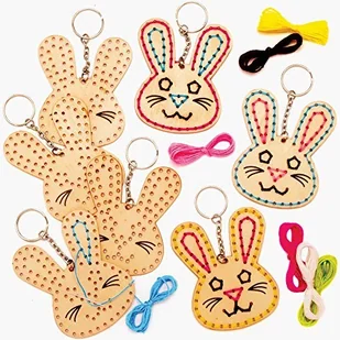 Baker Ross Baker Ross AT422 zestaw breloczków do kluczy wielkanocnych z drewnianą nicią 5 sztuk, drewniane szablony z jasną wełną do rękodzieła AT422