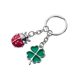 metalowy brelok do kluczy zapięcie w postaci kółka opakowanie czarne błyszczące pudełko upominkowe wzór: biedronka i koniczynka długość: 9 cm
