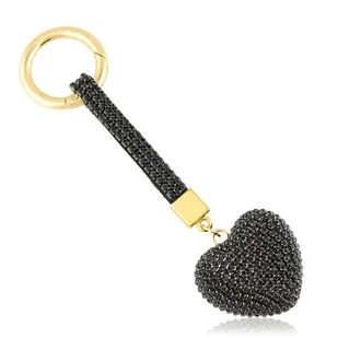Ozdobny brelok w kształcie kryształowego serca z cyrkoniami. Dodatki metalowe w kolorze złotym. Breloczek posiada oczko do przypięcia kluczy i zapięcie dzięk...
