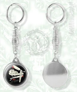 Solidny, metalowy brelok do kluczy w kolorze srebrnym. Pokryty ochronną warstwą chromu. Kółko na klucze przymocowane za pomocą stalowej sprężyny. Średnica br...