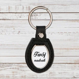 Brelok z czarnej skóry i metalu z Twoim nadrukiem lub zdjęciem Kształt: owal