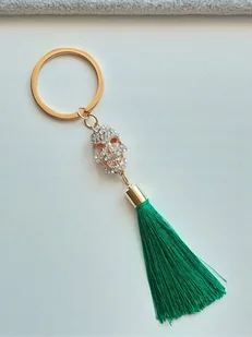 BRELOK ZIELONY CHWOST DO KLUCZY CZASZKA CYRKONIE ZŁOTY BRELOCZEK CHWOST Z CZASZKĄ W CYRKONIACH W ZESTAWIE JEST KARABIŃCZYK DO KLUCZY W KOLORZE ZŁOTYM ,CZASZK...