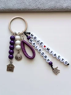 Fioletowy Brelok Breloczek Do Kluczy Słońce Dom Dowolne Miasto Napis