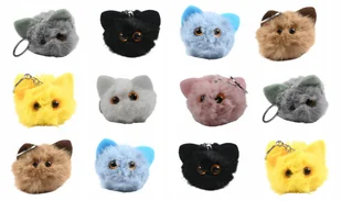 KOTEK POMPON BRELOK DO KLUCZY PLUSZOWA ZAWIESZKA PREZENT ZESTAW 12SZT