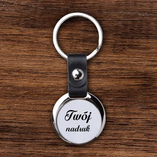 Okrągły metalowy brelok z czarnym paskiem z Twoim zdjęciem