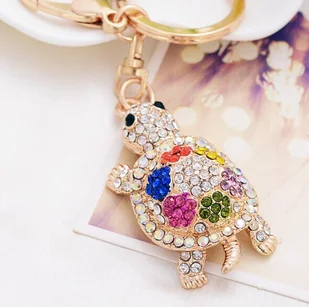 Ozdobny brelok z cyrkoniami ŻÓŁW Ozdobny brelok w kształcie żółwia z kolorowymi cyrkoniami. Wykonany z metalu w kolorze złotym. Breloczek posiada oczko do pr...
