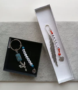 ZESTAW BRELOK ZAKŁADKA DO KSIĄŻKI NAPIS DZIEŃ DZIADKA I BABCI PREZENT ZESTAW ZAWIERA: ZAKŁADKA DO KSIĄŻKI Z NAPISEM BABCIA ZAPAKOWANA W OZDOBNE PUDEŁKO DOCZE...