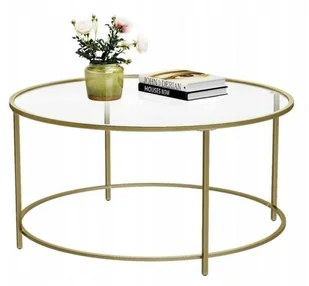 Stolik złoty okrągły Ława złota rama szkło hartowane (szerokość: 84 cm) 24378389
