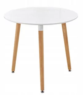 Elegancki okrągły stół w kolorze białym o średnicy 60 cm. Stół posiada trzy nogi w kolorze jasnego drewna bukowego. Każda z nóżek ma specjalne podkładki zapobiegające rysowaniu podłogi. Piękny biały blat wykonany jest z płyty mdf a mocowania nóg ze stali malowanej proszkowo. Świetnie sprawdzi się w każdym pomieszczeniu – salonie, kuchni czy jadalni.