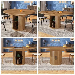 Okrągły rozkładany owalny stół jadalny z 2 drzwiami przesuwnymi - 118(158) x 118 x 76,8 cm - MDF - Orzech
