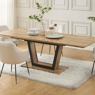 Rozkładany stół jadalniany VITENO będzie uroczym dodatkiem w każdym pomieszczeniu dzięki naturalnej surowej kolorystyce i eleganckiej podstawie. Dzięki systemowi przedłużek, stół z łatwością pomieścić do 10 osób!