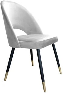 Nowoczesne krzesło ISKAR VELVET GOLD do jadalni i salonu Nowoczesne krzesło ISKAR VELVET GOLD tapicerowane jest aksamitną tkaniną w kolorze jasno szarym. Tkanina aksamitna w zależności od promieni słonecznych oraz ułożenia włosia, pięknie połyskuje wnosząc do pomieszczenia odrobinę luksusu i elegancji. Krzesło doskonale sprawdzi się w jadalni i salonie w stylu glamour. Może również stanowić wyposażenie sypialni i pokoju młodzieżowego, a także nowoczesnej poczekalni. Jest miękkie i wygodne, przez co zapewnia wysoki komfort użytkowania.