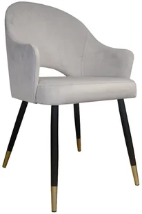 Nowoczesne krzesło JENISEJ VELVET GOLD do jadalni i salonu Nowoczesne krzesło JENISEJ VELVET GOLD tapicerowane jest aksamitną tkaniną w kolorze jasno szarym. Tkanina aksamitna w zależności od promieni słonecznych oraz ułożenia włosia, pięknie połyskuje wnosząc do pomieszczenia odrobinę luksusu i elegancji. Krzesło doskonale sprawdzi się w jadalni i salonie w stylu glamour. Może również stanowić wyposażenie sypialni i pokoju młodzieżowego, a także nowoczesnej poczekalni. Jest miękkie i wygodne, przez co zapewnia wysoki komfort użytkowania.