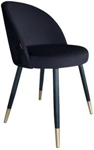 Eleganckie krzesło TANEW VELVET GOLD w stylu glamour Krzesło TANEW VELVET GOLD to eleganckie krzesło, które tapicerowane jest aksamitną tkaniną w uniwersalnym czarnym kolorze, który doskonale pasuje do wielu aranżacji. Idealnie sprawdzi się we wnętrzach w stylu glamour. Jest miękkie i wygodne, przez co zapewnia wysoki komfort użytkowania. W zależności od promieni słonecznych, tkanina pięknie połyskuje wnosząc do pomieszczenia odrobinę luksusu i elegancji. Krzesło TANEW VELVET GOLD sprawdzi się w jadalni i salonie.