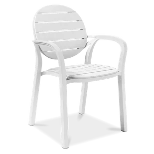 Krzesło Nardi PALMA Bianco - Stylowe krzesło ogrodowe, które będzie nie tylko zgrabnym ozdobnikiem, lecz przede wszystkim praktycznym meblem. Takim, który zachowa pełną funkcjonalność oraz atrakcyjny wygląd przez nadzwyczaj długi czas - praktycznie niezależnie od warunków użytkowania. A to dzięki najwyższej jakości materiałom użytym do produkcji i perfekcyjnemu wykonaniu. Dla krzesła Nardi Palma właściwie żadne warunki nie będą zbyt trudne. Sztuczna żywica wzbogacona o włókno szklane wytrzymuje wszelkie opady i temperatury.