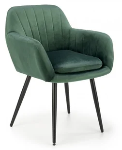 Halmar Krzesło z podłokietnikami tapicerowane ciemna zieleń velvet K429 na czarnych metalowych nogach