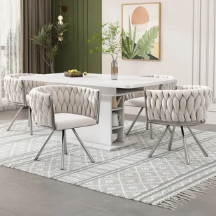 Funkcja obrotu 360°: Krzesło to posiada wygodną funkcję obrotu 360°, dzięki czemu możesz swobodnie poruszać się i rozmawiać przy stole jadalnym. Funkcja obrotu zapewnia elastyczność i wygodę.